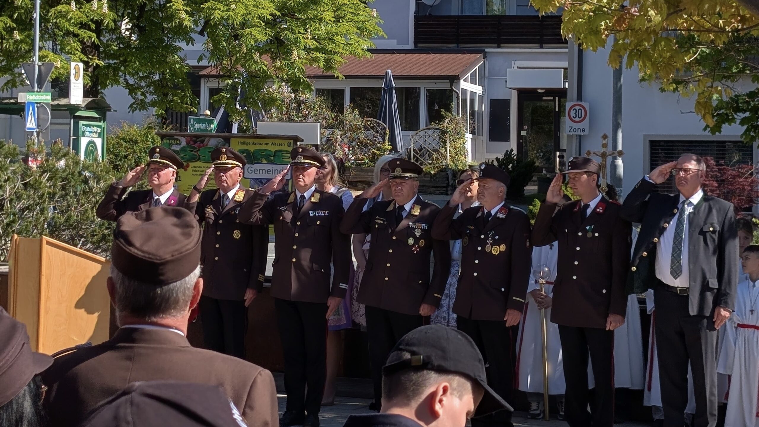 An diesem Tag kam der Freiwilligen Feuerwehr Edelstauden die besondere Ehre zu, das Kommando mit HBI Josef Neuhold über die fünf Wehren zu führen. Gemeinsam mit der Marktmusik Heiligenkreuz am Waasen marschierten die Kameradinnen und Kameraden durch den Ort zur Kirche, wo eine heilige Messe abgehalten wurde.