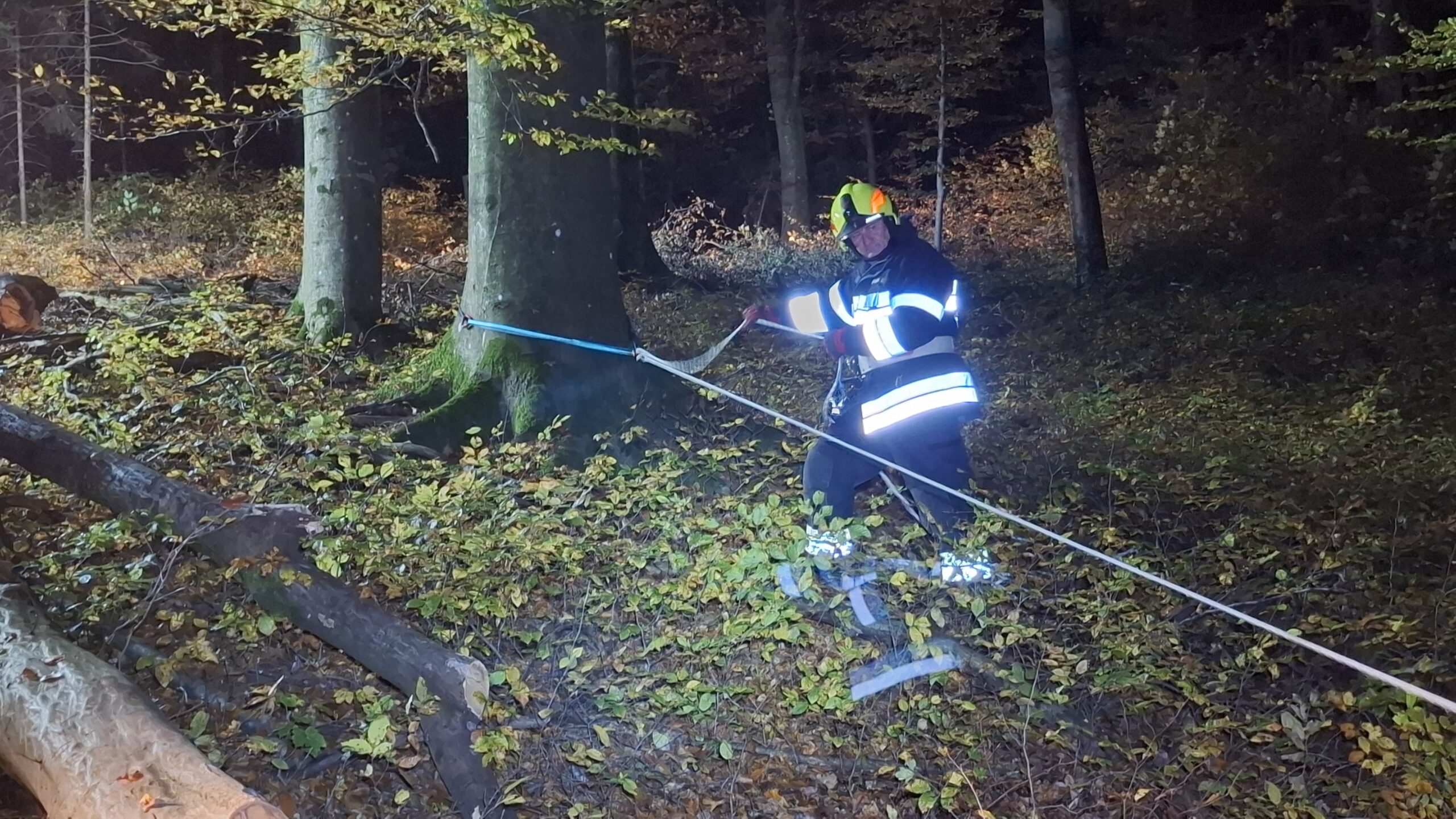Am Donnerstag, den 30. Oktober, fand die Monatsübung Oktober unter dem Thema „Forstunfall“ statt. Zwei verschiedene Szenarien wurden hierbei von Übungsleiter Josef Weixler vorbereitet. Zuerst galt es eine Person, welche unter einem Baum eingeklemmt war, schonend mittels Hebekissen zu retten. Als zweite Lage wurde eine Rettung unter dem Einsatz einiger technischer Mittel der Menschenrettung und Absturzsicherung simuliert. Ein besonderes Augenmerk wurde auf die koordinierte Abwicklung gelegt, welche im Ernstfall von hoher Wichtigkeit ist.